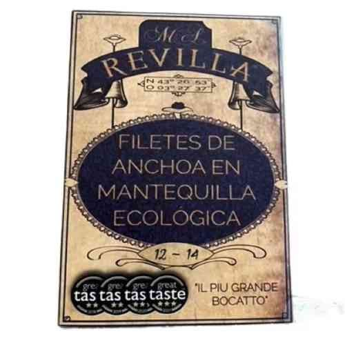 Anchoas Revilla I Anchoas del Cantábrico en Mantequilla Ecológica I Lata HANSA 120 gr. /12-14 lomos.